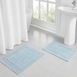 2-Piece Mikkah Blue Ribbed Border Bath Mats