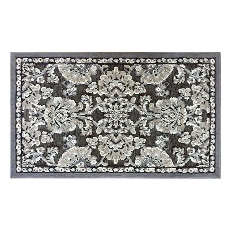 Our beautiful Arrington Damask chenille rug showcases traditional inspired high/low design that exemplifies elegance, comfort and sophistication. The meticulously woven construction of this 2x4ft. grey, taupe, black and white chenille runner boasts durability and will provide natural charm in any space.
