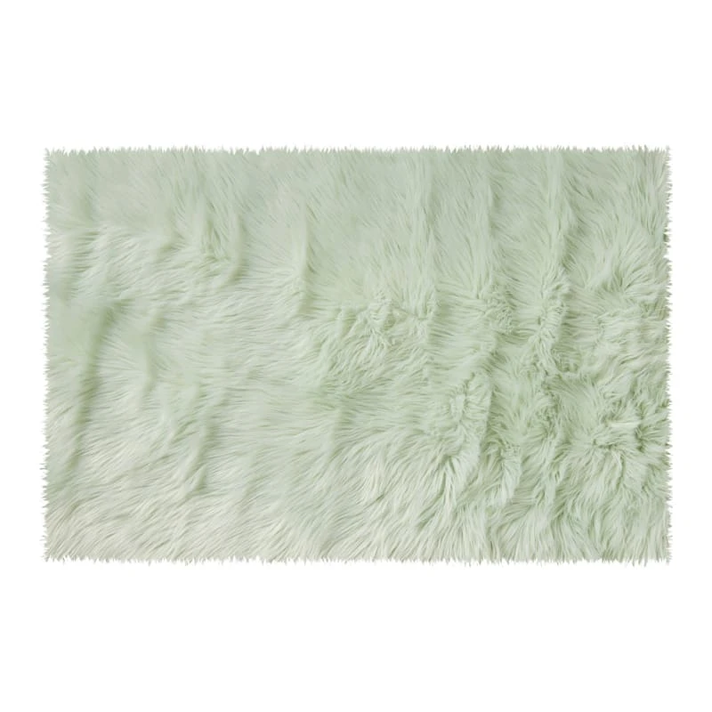 Warm-up your living room or bedroom with an oh-so soft modern Aspen mint faux fur accent rug. Featuring the character and appearance of a Flokati rug, this 2x3ft. green faux fur rug will stun anywhere itβs placed. Crafted of durable synthetic with a plush pile shag texture. Ideal for transitional and contemporary interiors.