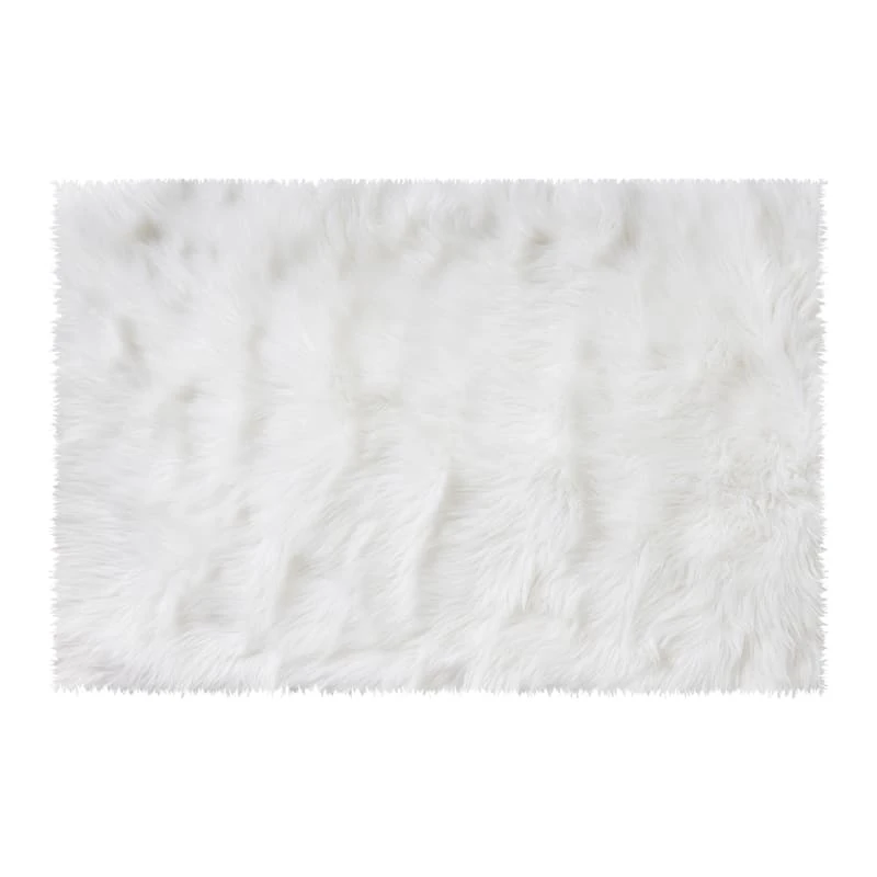 Warm-up your living room or bedroom with an oh-so soft modern Aspen white faux fur accent rug. Featuring the character and appearance of a Flokati rug, this 2x3ft. white faux fur rug will stun anywhere itβs placed. Crafted of durable synthetic with a plush pile shag texture. Ideal for transitional and contemporary interiors.