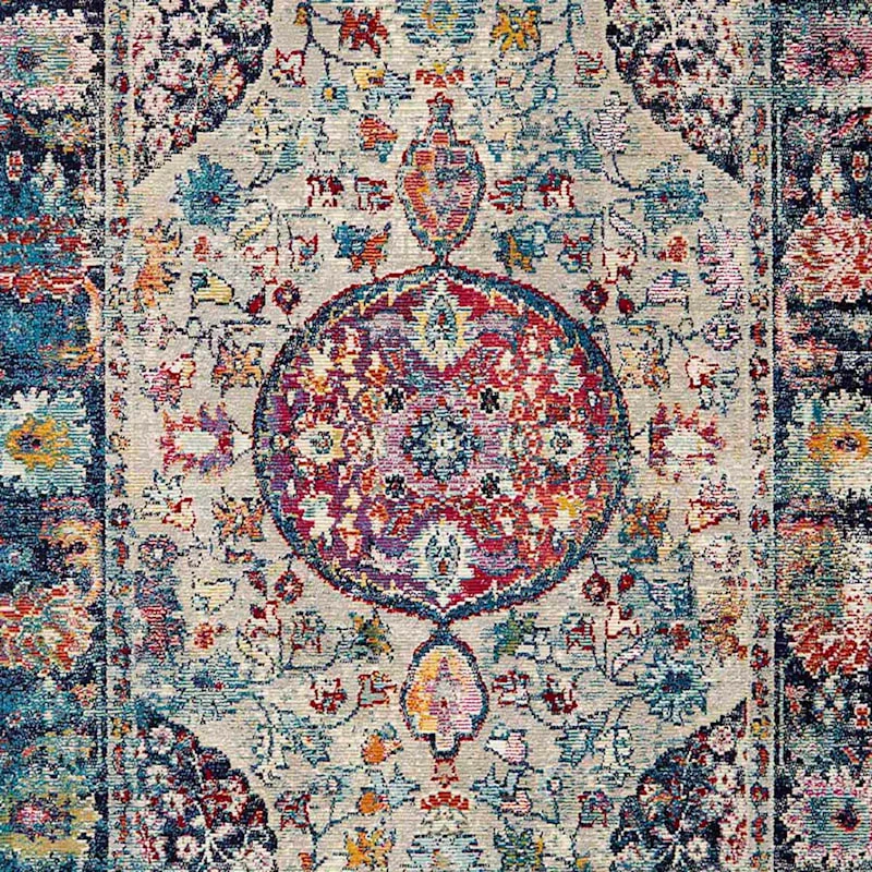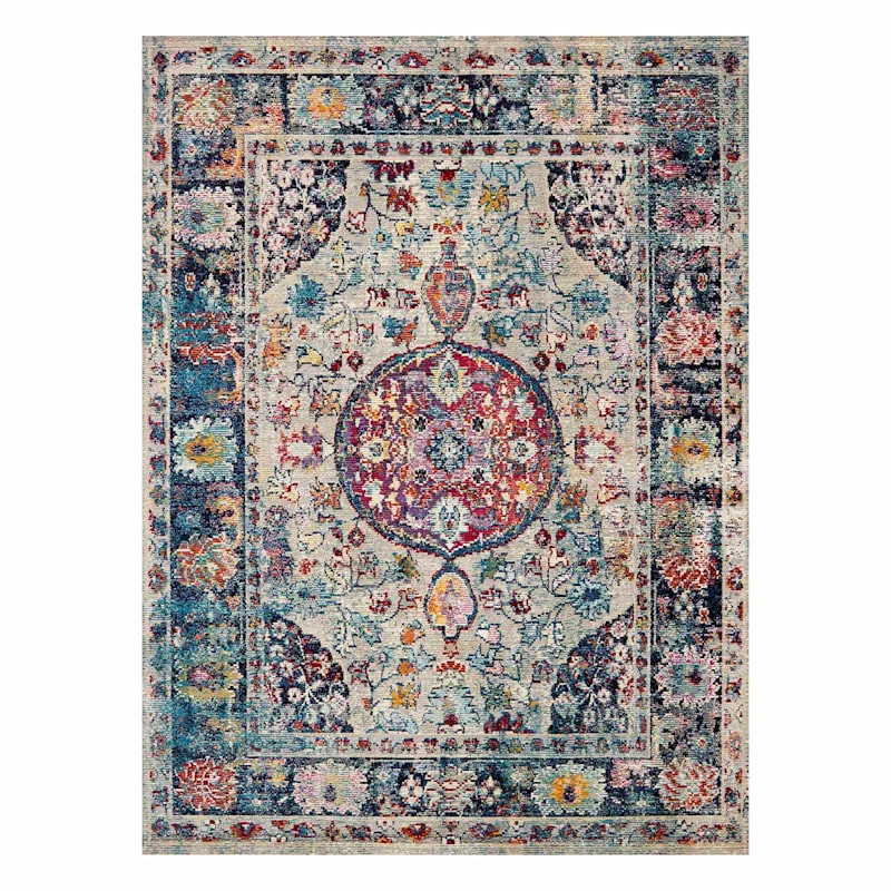 Crafting a modern eclectic aesthetic in your living rooms? Start your journey by adding our transitional Luna area rug. The perfect foundation for classic decor or modern settings, this attractive rug will effortlessly bring the look together. The oriental pattern with center medallion, scrolling and border motif gives this piece a touch of traditional appeal, while the distressed design elevates the look with vintage charm. The blue, red, grey and ivory color palette is ideal to blend into a variety of living rooms.