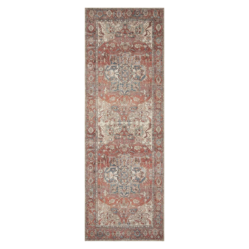 (B670) Valentina Terracotta Multicolor Medallion Runner, 2×7