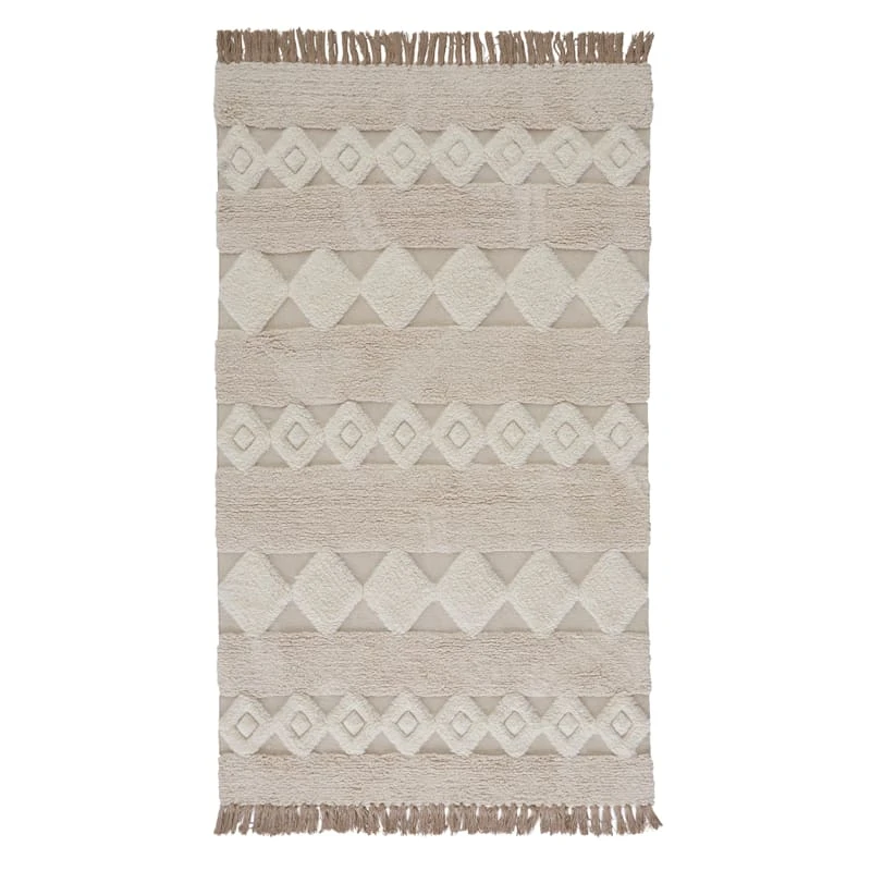 Our sisal-look St. Marco ivory flatweave rug features a compelling diamond stripe design that’s subtle yet striking. The perfect neutral base to any home decor, this rug will add eclectic charm to any room. The microfiber construction boasts comfort, durability and easy care. Available in 5x7ft. and 8x10ft. sizes and a 2x8ft. runner.