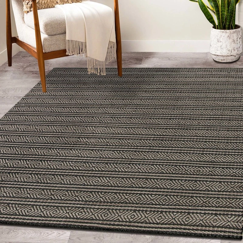 Modern farmhouse meets At Home prices in Honeybloom, our exclusive new brand that celebrates life lived together. With its elegant and chic design, this handloomed flatweave rug would be a beautiful addition to any home. Handmade in India, with a premium blend of natural fibers and soft yarns, the charcoal Honeybloom area rug has a unique hand and helps to add subtle pattern and texture to your existing home design.