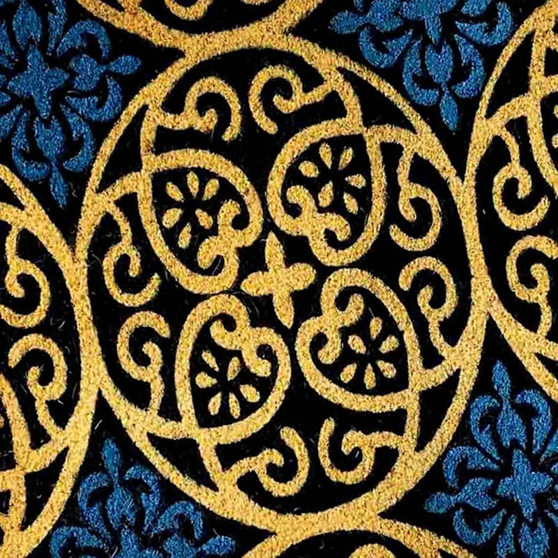 Our natural, black and blue medallion stripe coir doormat lets you express your style as you welcome friends and family. With a wonderful natural hue, this 22x47in. doormat coordinates with all your seasonal decor.