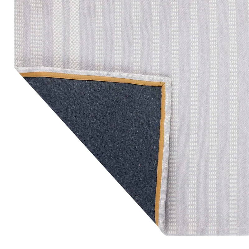 Our charming Camden stripe 3x5ft. grey accent rug is ideal for updated and modern settings, and it helps with noise levels and keeps bare floors nice and comfy. The soft cotton rug pile offers a nice feeling to the touch and will be a treat for your toes. This wonderful neutral stripe area rug will be comfortable in a contemporary loft or just at home in a modern farmhouse.