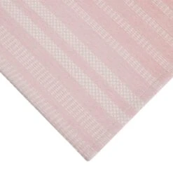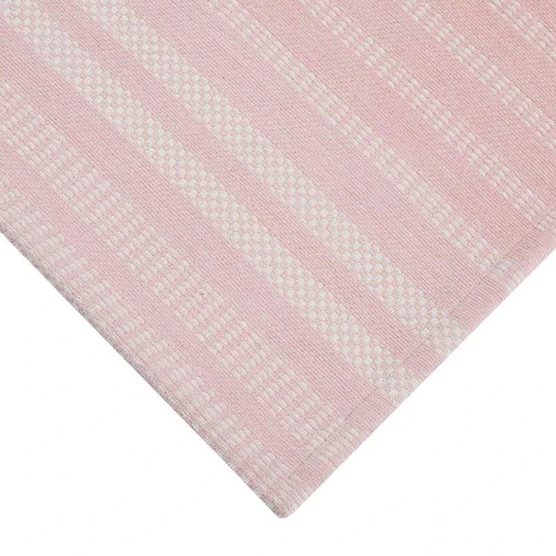 Our charming Camden stripe 3x5ft. pink accent rug is ideal for updated and modern settings, and it helps with noise levels and keeps bare floors nice and comfy. The soft cotton rug pile offers a nice feeling to the touch and will be a treat for your toes. This wonderful pastel stripe area rug will be comfortable in a contemporary loft or just at home in a modern farmhouse.