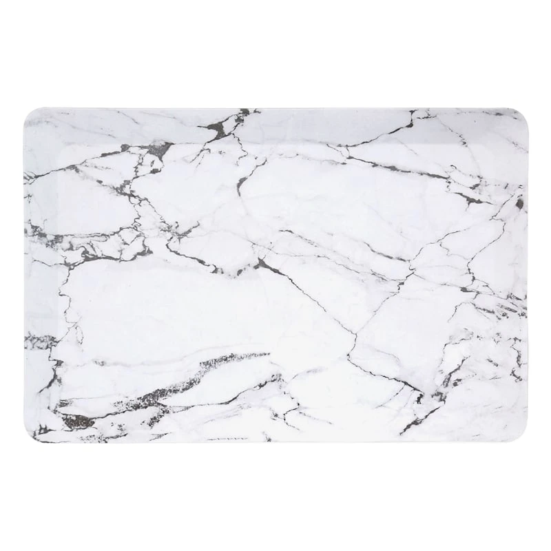 Give weary feet a rest in the kitchen with our comfort anti-fatigue marble-look mat. The 20x32in. rectangular design is made of synthetic foam to offer extra cushioning underfoot. A non-slip backing helps keep it in place. Wipe clean with a damp sponge or cloth.