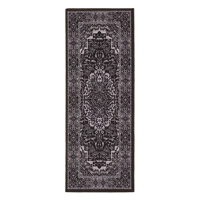 An area rug warms up hard flooring while laying the groundwork for the rest of your home decor. An area rug is a must for creating the base mood for every room throughout your home. All polyester construction, our black and grey medallion area rug features a large medallion and border motif. Surprisingly soft, this rug is ideal for bringing a cozy and inviting feel to your space with the added benefit of being constructed of easy-care material. Available in 2x7ft. runner.