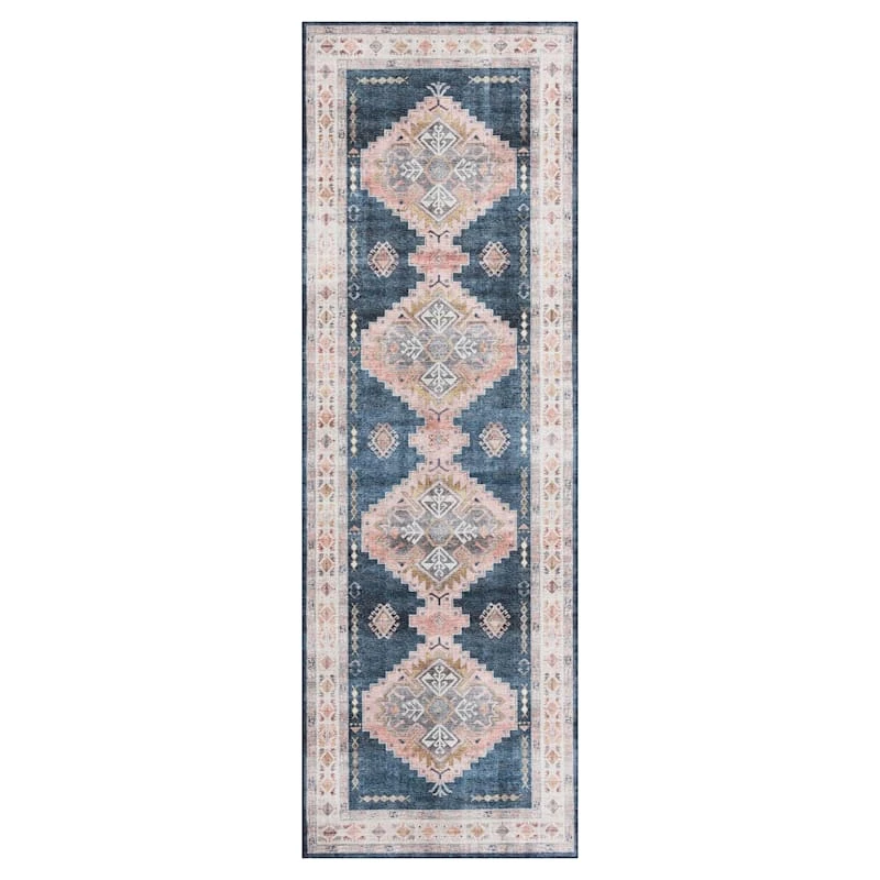 (D564) Found & Fable Khloe Blue Medallion Runner, 2×7