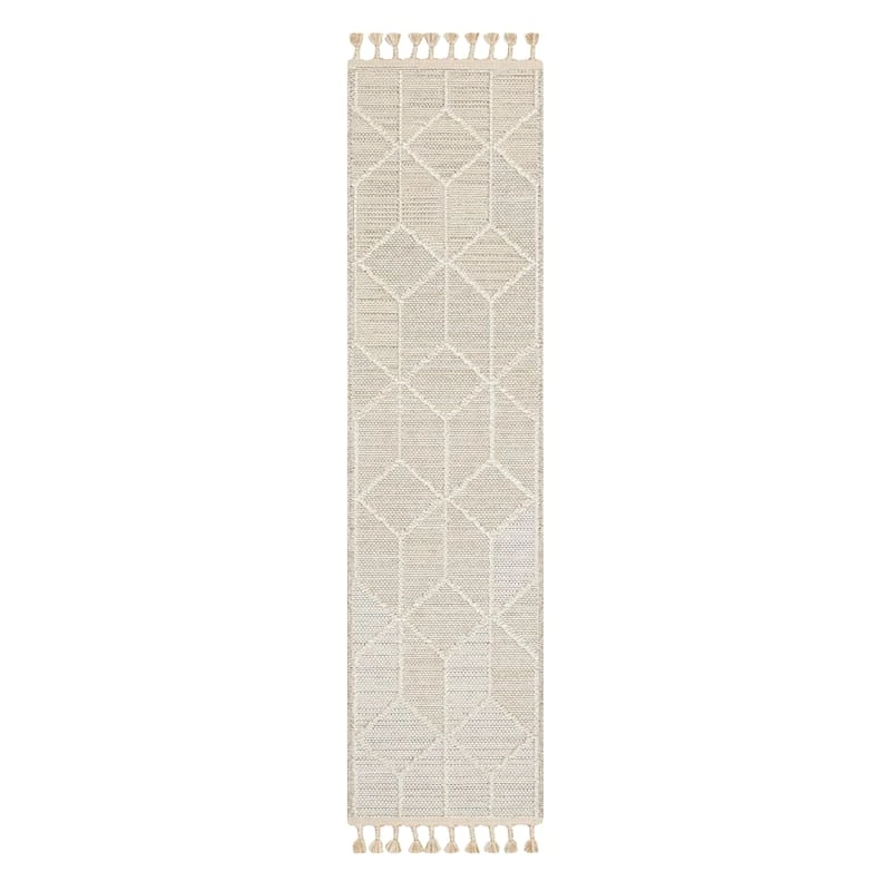 (E465) Found & Fable Soho Beige Tasseled Runner, 2×6