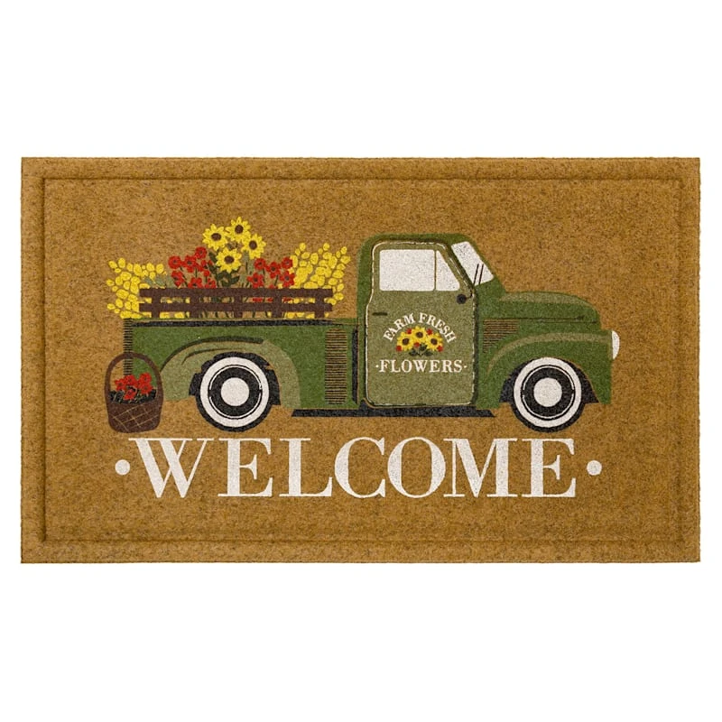 Floral Farm Truck Welcome Coir Mat, 18×30