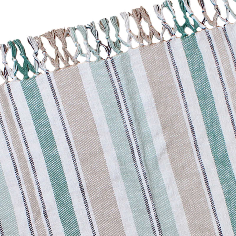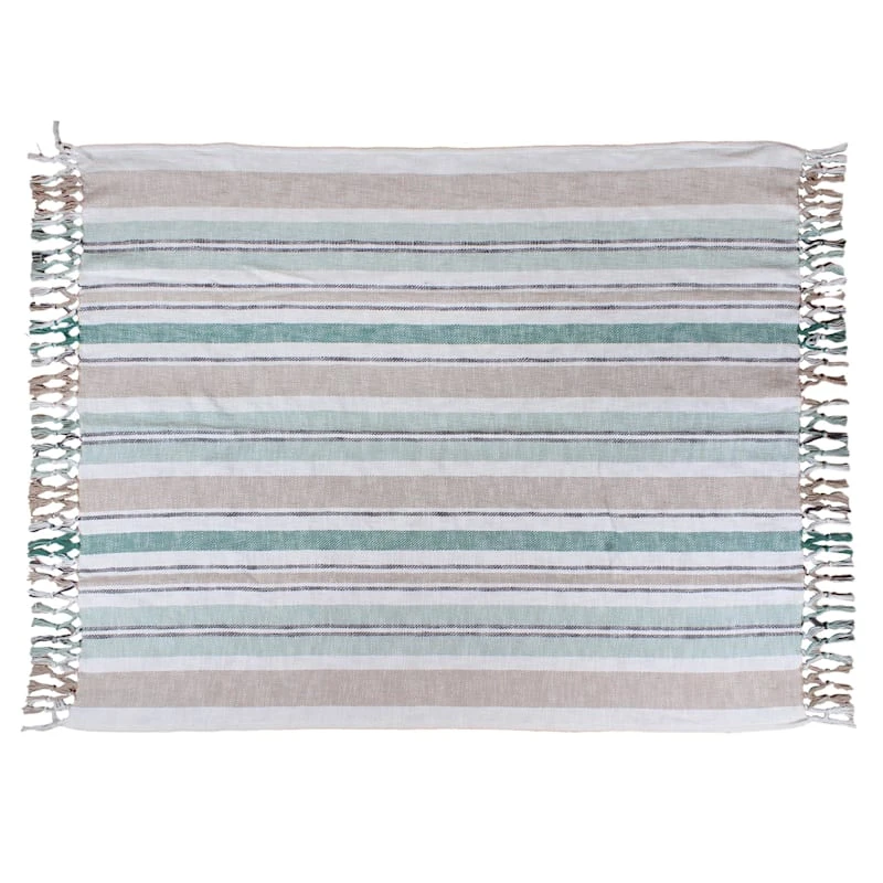 Found & Fable White & Green Woven Striped Fringe Throw Blanket, 50×60