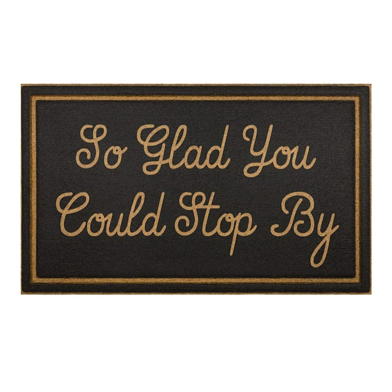 Our natural and black “Glad you could stop by” rubber doormat lets you express your style as you welcome friends and family. With a wonderful natural and black message motif, this 18x30in. doormat coordinates with all your seasonal decor.