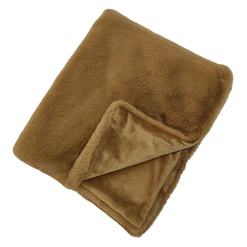 Our reversible gold faux fur plush throw blanket features a wonderful fabric that will keep you warm and toasty. Measuring 50x60in., this luxuriously textured faux fur and solid plush throw is large enough to curl up in and has classic year-round style.