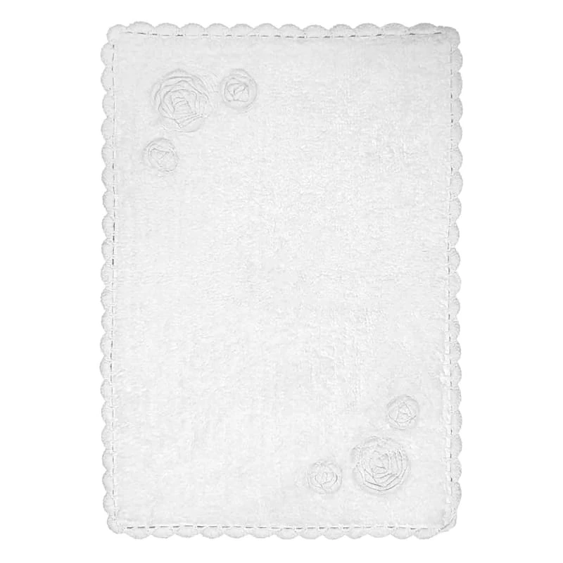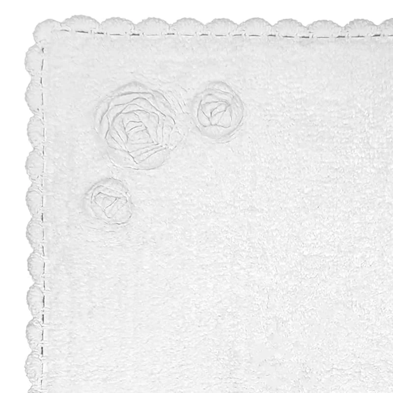 Grace Mitchell White Cabbage Rose With Crochet Edge Bath Mat, 20×30
