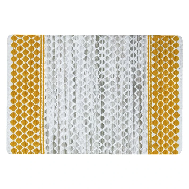 Grey & Yellow Narrow Stitch Cotton Bath Mat, 20×30