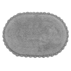 Grey Crochet Edge Round Bath Mat, 21×34