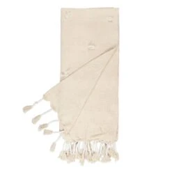 Honeybloom Neutral Cotton Throw Blanket With Tassels, 50×60