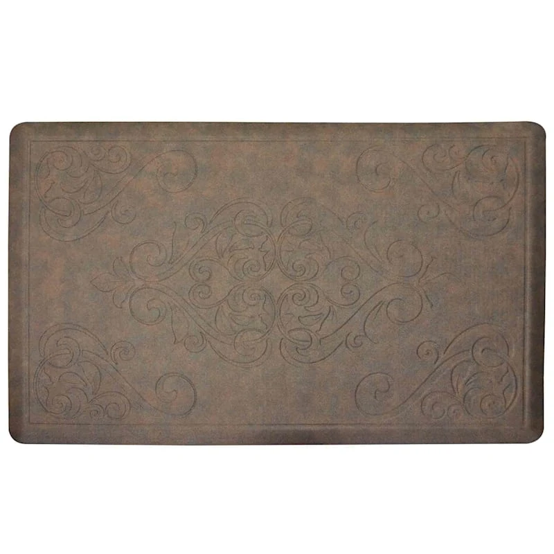 Our embossed medallion GSTEP kitchen mat lets you express your style as you welcome friends and family for special occasions. With a simple bronze hue, this 24x36in. handy synthetic mat coordinates with all your decor and softens the step as well.