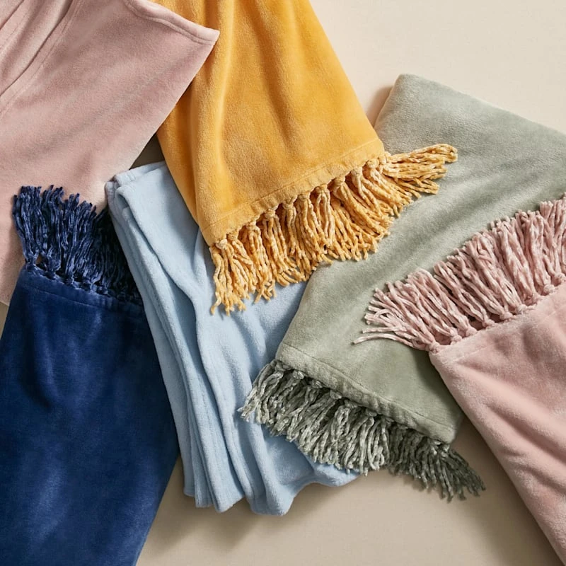 Navy Fringe Plush Throw Blanket, 50×60