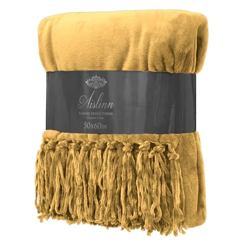 More than just an extra layer, a throw blanket is perfect for rounding out any room with a decorative and very useful touch. Just like our 50x60in. ochre polyester plush throw, it showcases an allover solid hue, fanciful fringe and a wonderfully textured/plush feel—it’ll be right at home in modern and traditional decor as well.
