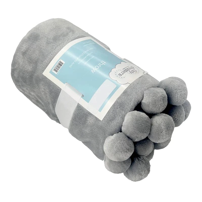 Plush Pom Throw Glacier Grey