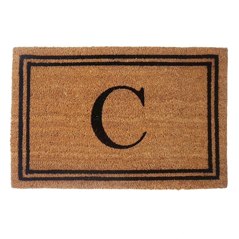 Providence Monogram C Black Natural Border Coir Mat, 18×27