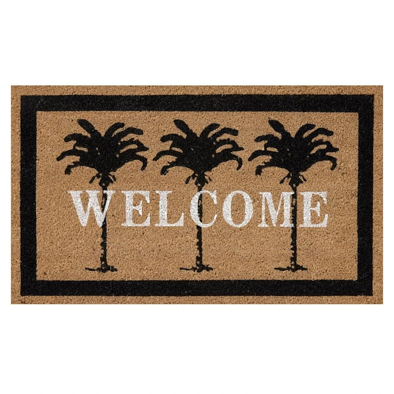 A collection that lets everyone relax in style. Polished finishes and classic hues pair with fun finds. Providence is where elegant settings still feel comfortable and warm—exclusively At Home. Our coir “Welcome” palms doormat lets you express your style as you welcome friends and family into your home all year long. With a wonderful natural motif, this 18x30in. doormat coordinates with all your seasonal decor.