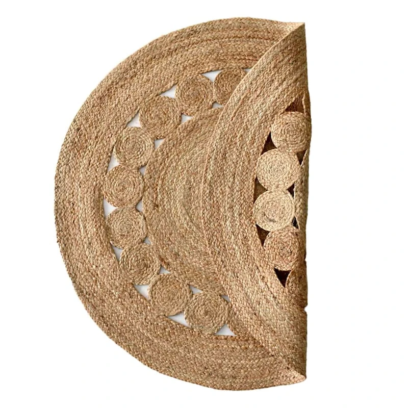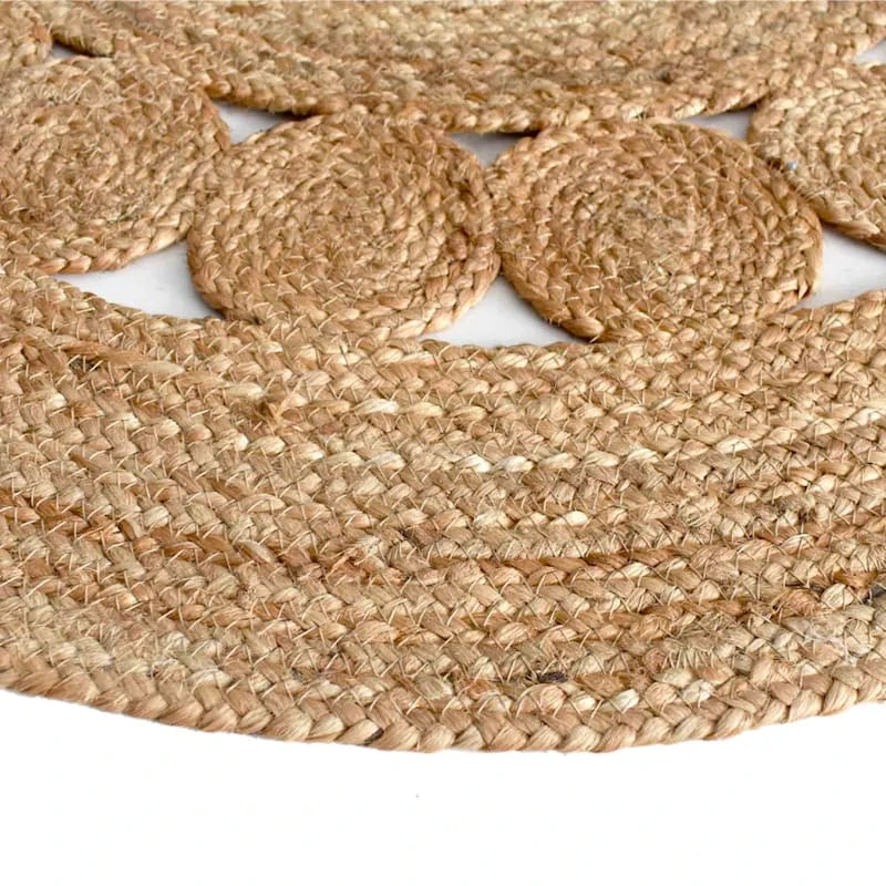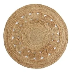 All artistic aspects aside, area rugs help absorb and decrease the noise factor as they soften the step of any hard flooring within your home. Take our round pieced jute accent rug, for example, designed with a tight spiral weave and open circle detailing, this rug brings an element of organic simplicity to your space. Perfectly at home in casual to formal situations, this 3ft. 100% jute rug is a natural go-to for eclectic living rooms, bedrooms and so much more.