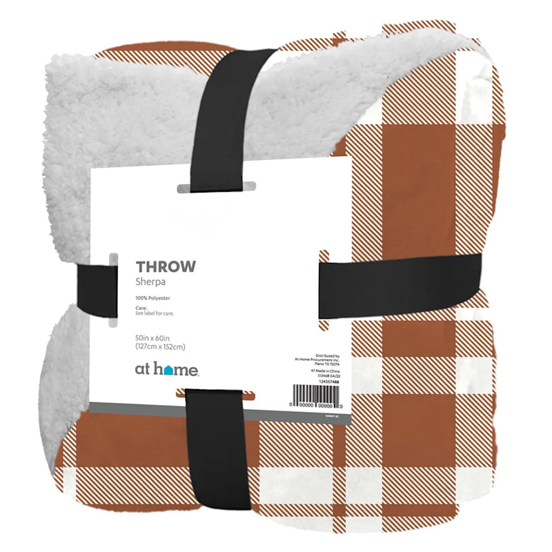 Our reversible rust plaid and faux Sherpa polyester throw blanket features a wonderful fabric that will keep you warm and toasty. Measuring 50x60in., this luxuriously textured faux Sherpa fur plush throw is large enough to curl up in and has classic year-round style.