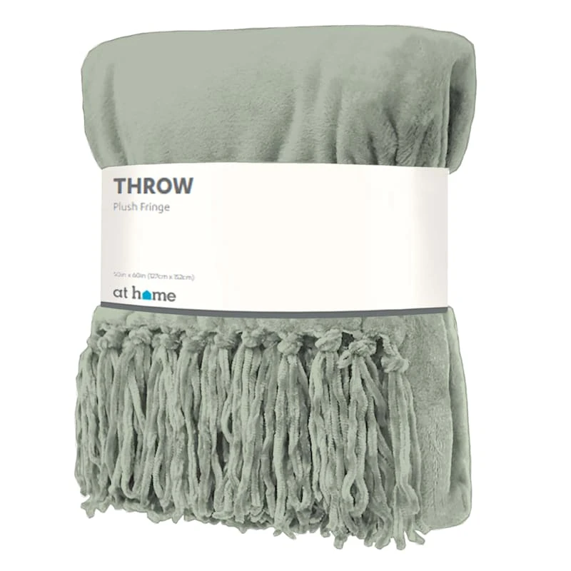 Sage Green Plush Fringe Throw Blanket, 50×60