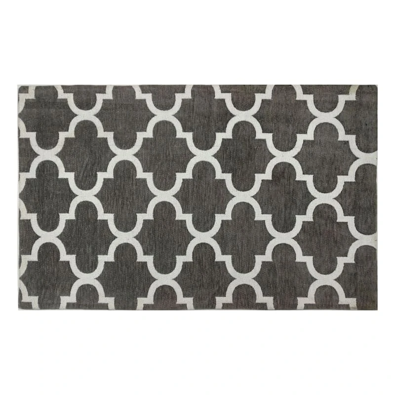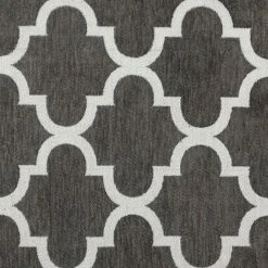 Our Soho Grey Trellis Chenille accent rug brings modern design to your floors with its geometric ogee pattern. It features a dark grey and ivory design. Made of 100% polyester, this 24x40in. area rug has a short pile, making it ideal for areas with heavy foot traffic.