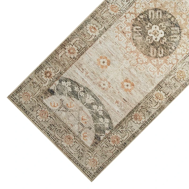 Taupe & Gold Medallion Runner, 2×5