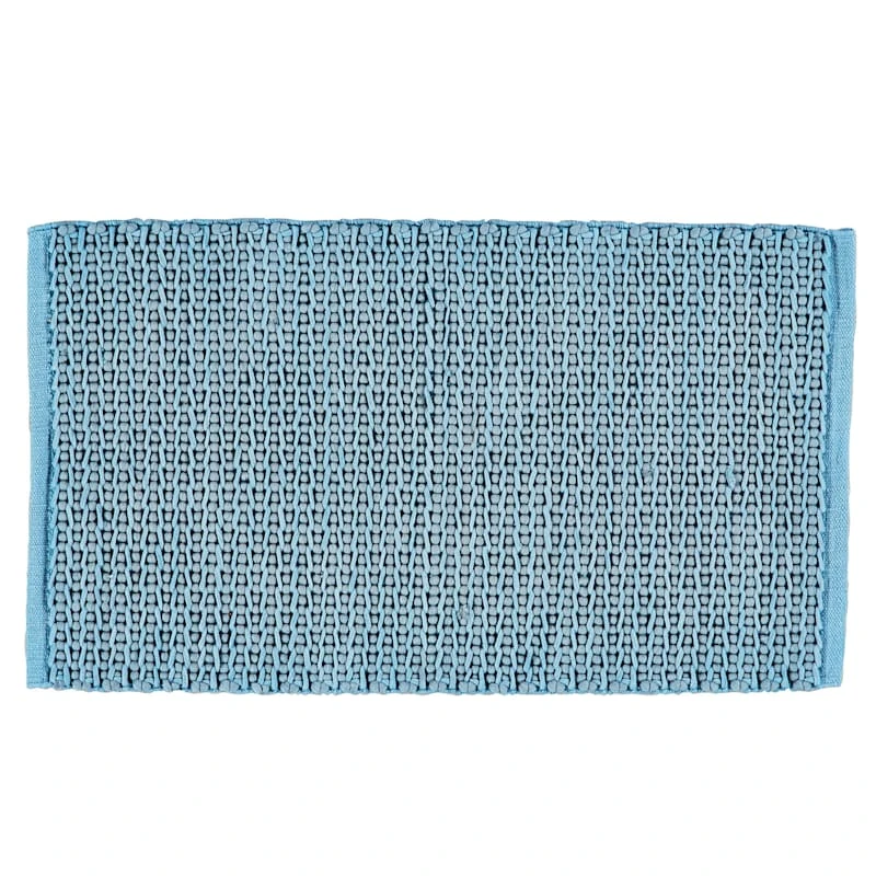 All artistic aspects aside, area rugs help absorb and decrease the noise factor as they soften the step on hard flooring in your home. Our woven Ropedot cotton accent rug, designed with a refreshing teal colorway, will bring an element of organic simplicity to your space. Perfectly at home in casual to formal situations, this 20x34in. rug is a natural go-to for eclectic living rooms, bedrooms and so much more.