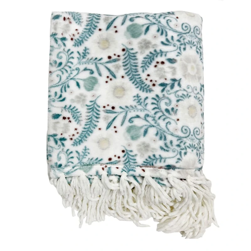 Tracey Boyd Floral Leaf Print Throw Blanket, 50×60