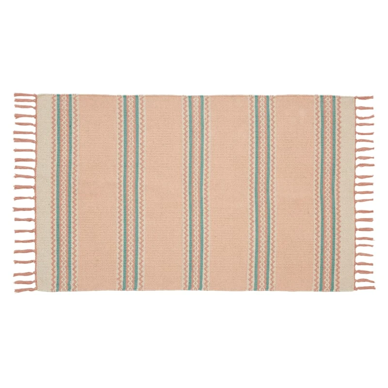 Tracey Boyd Morgan Pink Striped Accent Rug With Fringe, 27×45