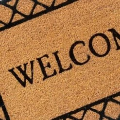 Our natural and black “Welcome” coir doormat lets you express your style as you welcome friends and family. With a wonderful natural hue and lattice border, this 18x27in. doormat coordinates with all your seasonal decor.