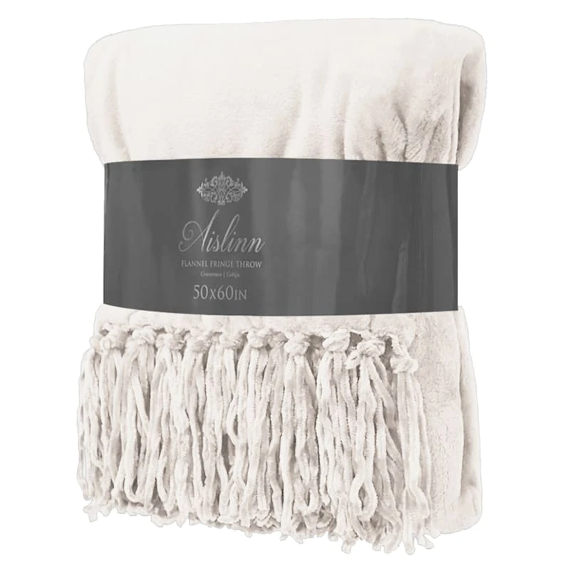 More than just an extra layer, a throw blanket is perfect for rounding out any room with a decorative and very useful touch. Just like our 50x60in. white polyester plush throw, it showcases an allover solid hue, fanciful fringe and a wonderfully textured/plush feel—it’ll be right at home in modern and traditional decor as well.